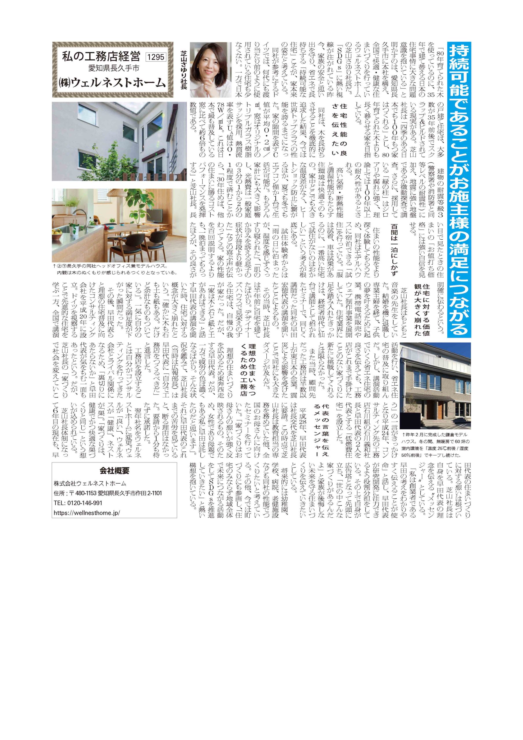 この度、日本住宅新聞社・2021年10月15日版「私の工務店経営」に弊社代表、芝山の取材記事が掲載されました。